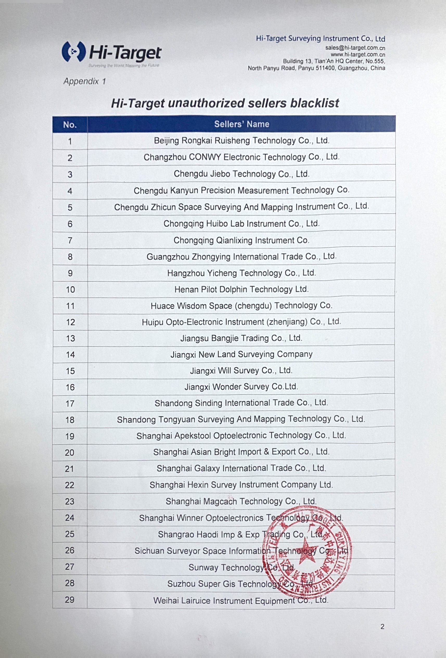 Kako bismo udovoljili međunarodnim korisnicima i osigurali pružanje profesionalnih i pouzdanih proizvoda i usluga, kao dio naše globalne ekspanzije, uspostavili smo mrežu zastupnika kako bismo osigurali jednostavan pristup našim proizvodima. Popis naših ovlaštenih zastupnika možete pronaći ovdje: https://en.hi-target.com.cn/dealer-nearby/ ili nas kontaktirajte na sales@hi-target.com.cn za više informacija.