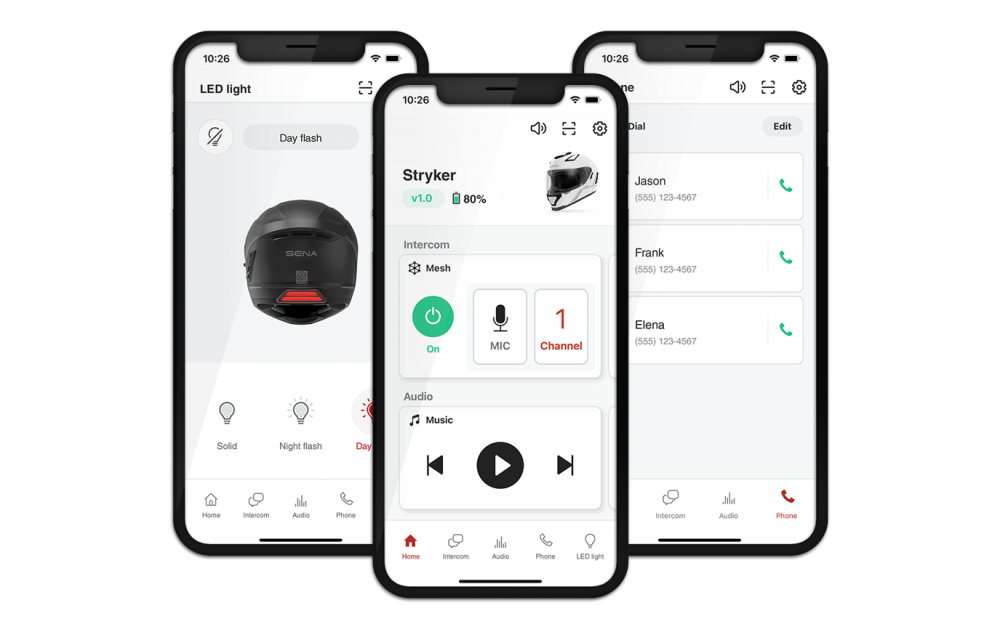 Nova aplikacija Sena Motorcycles korisnicima daje način da vizualno konfiguriraju postavke uređaja Stryker. Preuzmite aplikaciju kako biste prilagodili razne postavke i značajke na Strykeru, uključujući mogućnost daljinskog upravljanja postavkama kanala za Open Mesh ili čak postavljanje privatne grupe za Group Mesh. Korisnici Strykera također će moći kontrolirati LED stražnja svjetla kacige putem aplikacije Sena Motorcycles. Preuzmite aplikaciju Sena Motorcycles u trgovini App Store ili Google Play.