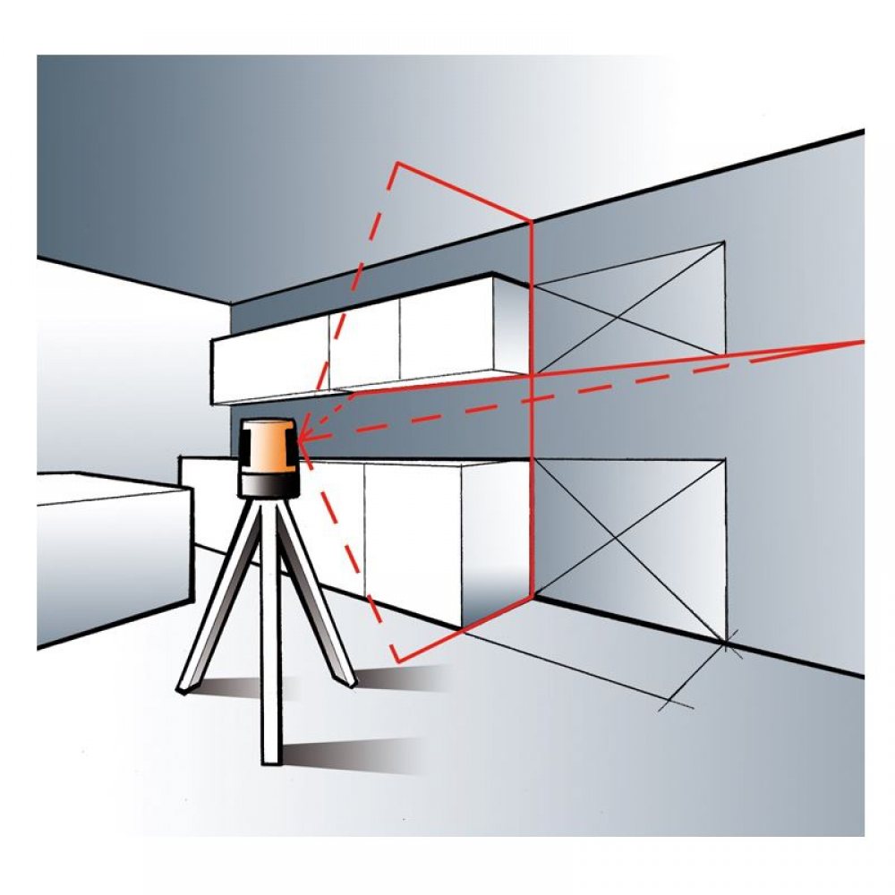 - Vertikalna laserska linija na 90° prema laserskom križu