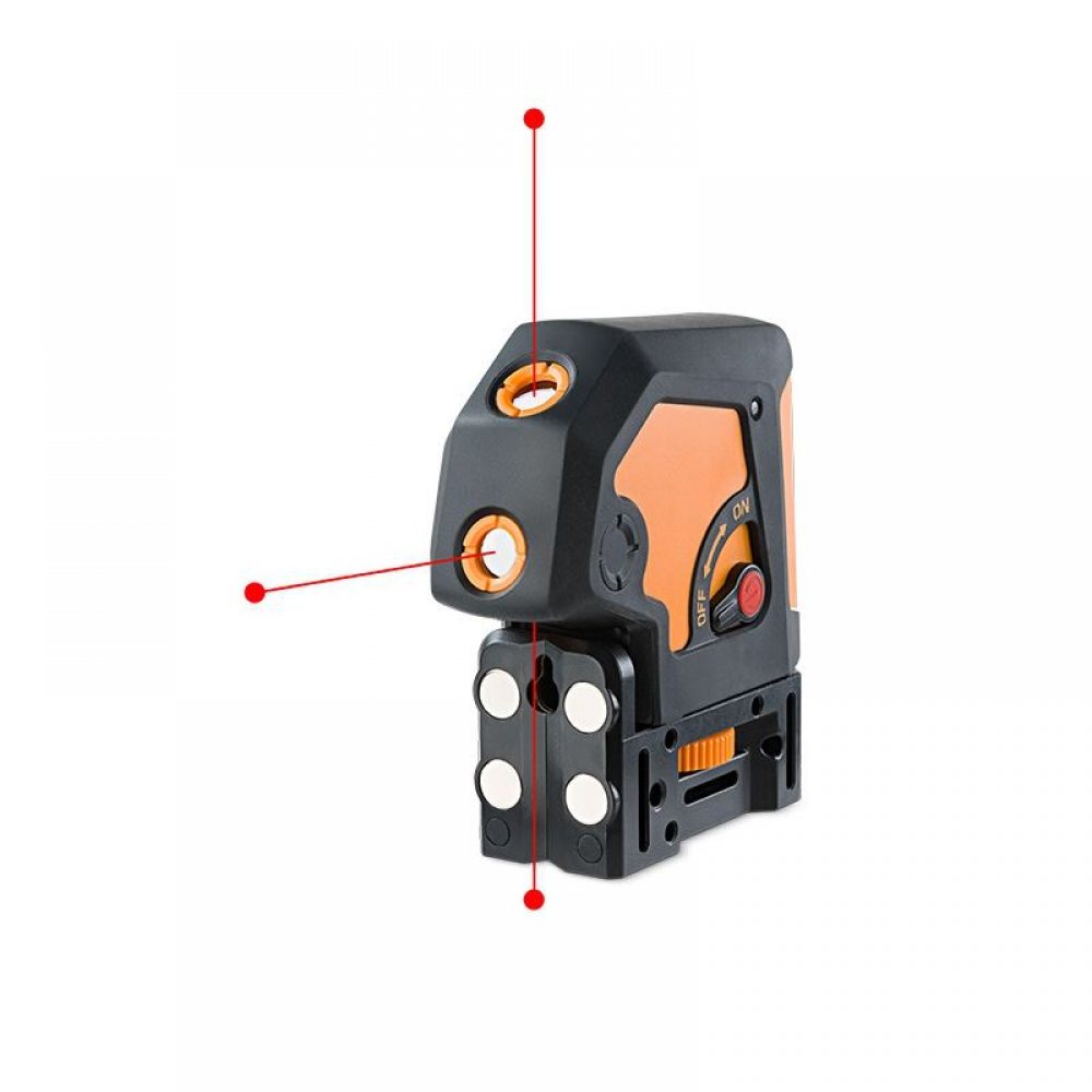 Samo-nivelirajući visak za lako poravnanje od poda do stropa. 3 laserske točke pod pravim kutevima.