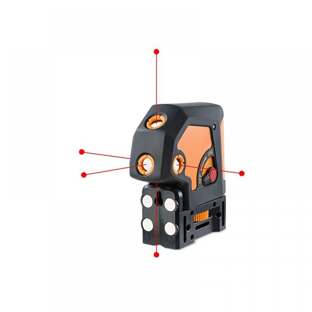 5 samo-nivelirajuće laserske točke na postavljenim kutevima jedna prema drugoj: gore, dolje, naprijed, lijevo, desno. Koriste se za visak, poravnanja, niveliranje, prijenos točaka i dr.